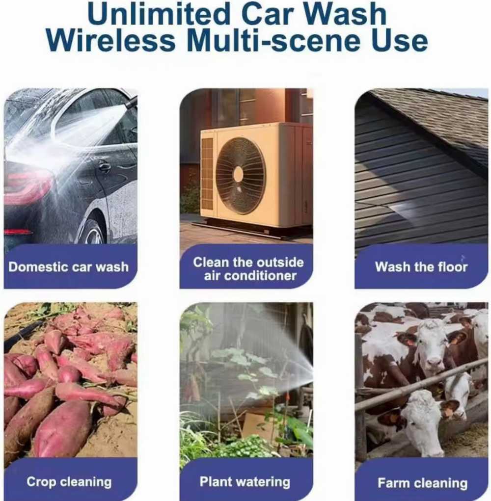 تم تصميم مسدس غسيل السيارات اللاسلكي ببطاريتين لتوفير أداء قوي وتنظيف عميق دون الحاجة إلى توصيل كهرباء أو خرطوم ماء ثابت. مثالي للسيارات، الدراجات، الحدائق، النوافذ، والمزيد.